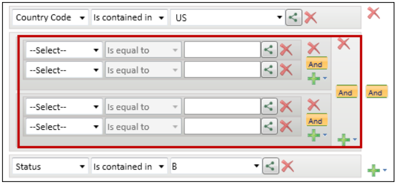 You can specify complex filter criteria when you create or modify an exposure view and in other areas of Touchstone.