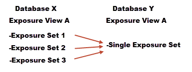 The exported exposure views maintain the same structure as the source exposure views except that they reside on a single database. In addition, since Export to Database copies the exposure sets within the selected exposure views, any filters that were applied to the selected exposure views are reflected in the copied exposure sets.