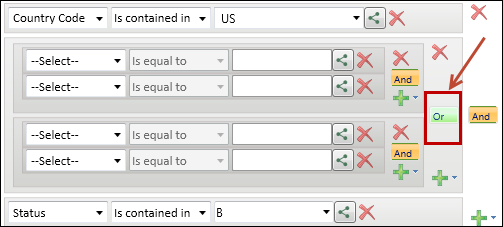 a. In the first filter row, select "Country Code" "is contained in" "US".