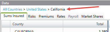 To view exposure by country or subarea (e.g., county, province), select that exposure