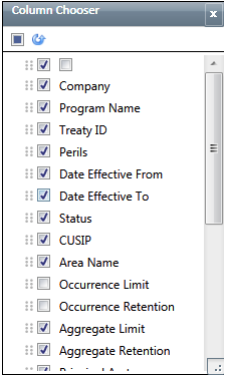 The Column Chooser is available from a variety of panes in Touchstone and Touchstone Re and used to filter which columns to display.