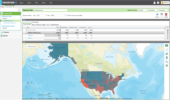 To view exposure by country or subarea (e.g., county, province), select that exposure