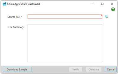 In the China Agriculture Custom ILF dialog box, identify the Source file which contains the custom franchise