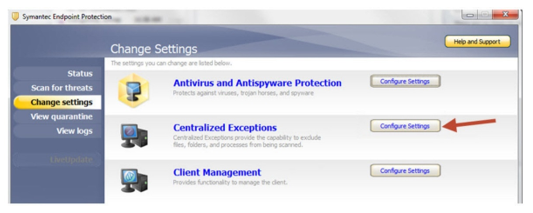 Open Symantec Endpoint Protection and click Change